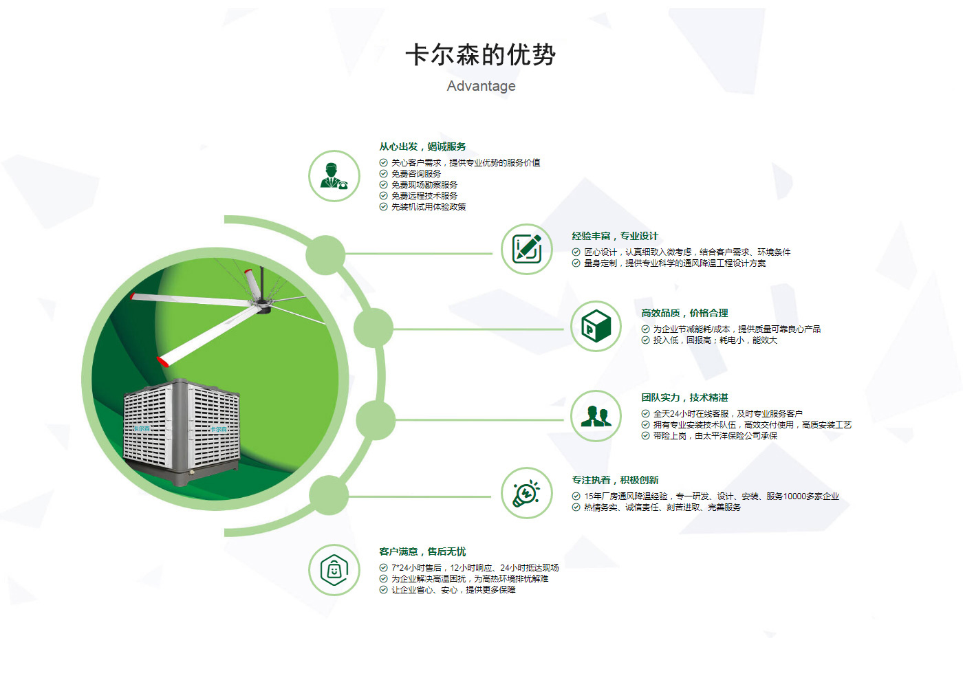??晉江市卡爾森機(jī)電設(shè)備有限公司是一家集設(shè)計(jì)、制作、銷售、安裝工業(yè)通風(fēng)設(shè)備、中央空調(diào)、節(jié)能環(huán)保空調(diào)、脈沖除塵設(shè)備、環(huán)境凈化工程、等環(huán)保工程企業(yè)。并提供環(huán)境影響評(píng)價(jià)、環(huán)保工程總承包、環(huán)保工程設(shè)計(jì)、環(huán)保工程運(yùn)營、環(huán)保工程成套設(shè)備等一站式服務(wù)。公司一直誠心服務(wù)于工業(yè)廠房的通風(fēng)設(shè)施,我們的產(chǎn)品:“品種齊全、質(zhì)量優(yōu)越”。根據(jù)客戶的需求精心設(shè)計(jì),高質(zhì)量的制造,力求使每個(gè)產(chǎn)品都達(dá)到合理耐用、節(jié)能環(huán)保??茖W(xué)的設(shè)計(jì)和精美高品質(zhì)的產(chǎn)品,完善的服務(wù)系統(tǒng),加強(qiáng)售前、售中、售后服務(wù),對(duì)顧客在使用商品中出現(xiàn)的各種問題及時(shí)解決,使顧客無后顧之憂。產(chǎn)品廣泛適用于各類型制造業(yè)、機(jī)械類、五金冶煉、食品、化工、電子、紡織、噴涂、娛樂以及服務(wù)等場所。我們秉承“質(zhì)理過關(guān)、價(jià)格合理、交期準(zhǔn)時(shí)、服務(wù)周到”而受到新老客戶的好評(píng)和信賴。我們堅(jiān)持“客戶至上、質(zhì)量上乘”為宗旨,努力工作,為您換來潔凈美好的明天。卡爾森愿以過硬的質(zhì)量,良好的信譽(yù)同各界朋友一起開創(chuàng)更加輝煌的未來。